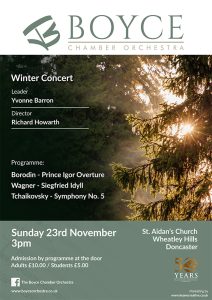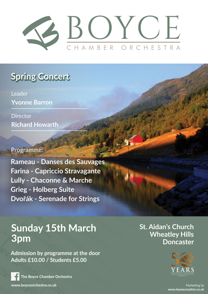 Established in 1969, Boyce Chamber Orchestra is made up of local professional and semi professional players. Our concerts take place at St Aidan's Church, Wheatley Hills, DN2 5PE